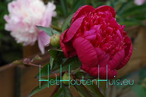 Pioenroos bloeit met gevulde bloemen vormt een bossige, compacte plant met donkergroen blad van oorsprong Nederlandse varieteit mooie Pioenroos voor in de border |