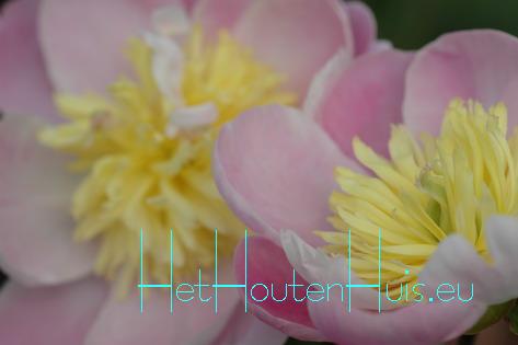 Pioenroos sierlijke Pioen in een mooie kleurencombinatie de bloemen zijn lichtrose met een botergeel hart en staan op stevige stelen makkelijke groeier |
