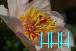 Pioenroos vroegbloeiende Pioen in een heel bijzondere kleur de enkele bloemen zijn groenigwit met een rose rand enstrepen en een geel hartgroeit uit tot een brede pol |