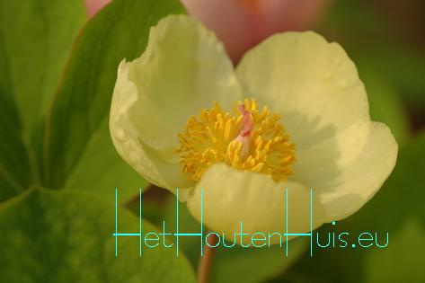 Pioenroos prachtige nieuwe introduktie uit de V.S. enkele bloemen die wat zachter geel verbloeien zachtgroen blad sterkgroeiende Pioen stevige stelen heel mooi in grotere groepen |