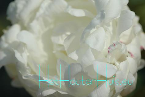 Pioenroos oude Engelse varieteit zoet geurende, gevulde bloemen, melkwit met zachtgele petalen een rozerode waas in het hart Kelway, 1916 |