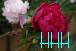 Pioenroos heel mooie donker bruinrode bloemen Japanse bloeiwijze de bloemblaadjes zijn aan detoppen licht naar binnen terug-geslagen, het hart van debloemen is eveneens donkerbruinrood met gele randenstevige stelenHenry Sass-Helen Reynolds, 1971 nieuw |
