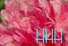 Pioenroos dubbele bloemen in een warme kleur de randen van de bloemblaadjes, verkleuren naar wit |