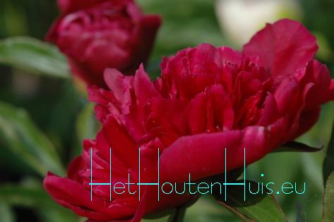 Pioenroos een Pioen met grote bolvormige,gevulde bloemen een veel gekweekte vorm voor de snij met stevige stengels en donkergroen blad, verbloeit een beetje purper bijzonder rijkbloeiend |