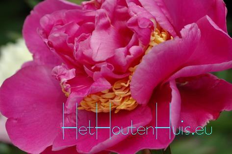 Pioenroos enkele donkerroze bloemen met een geel hart de bloemblaadjes blijven mooi op kleur tijdens de bloei en verbleken pas op het laatst |