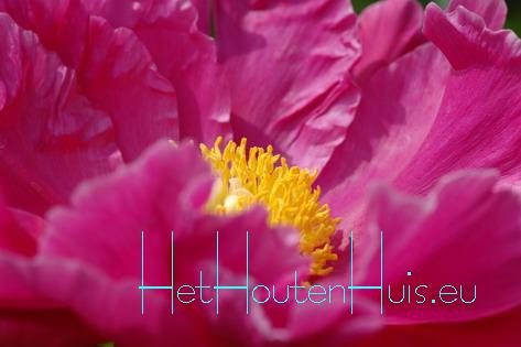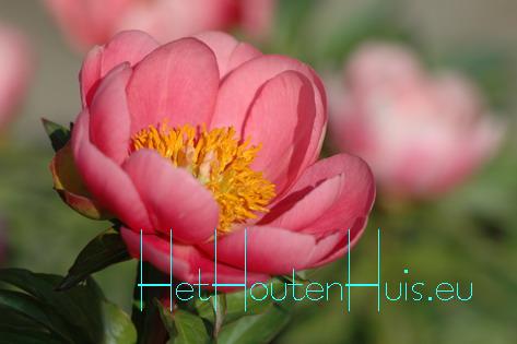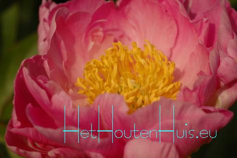 Pioenroos enkele warmroze bloemen met een geel hart |