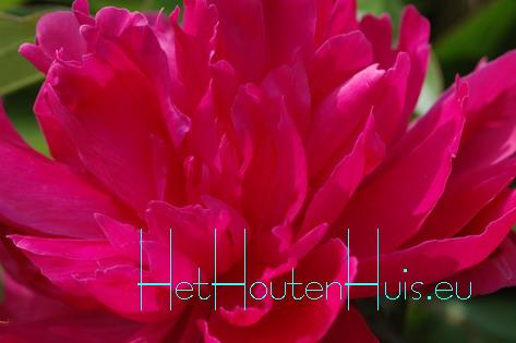 Pioenroos gevulde bloemen met goudgele meeldraden bijna 100 jaar oude cultivar waarvande helderrode bloemen goed opkleur blijven, heeft gezond bladook een goede snijbloem |